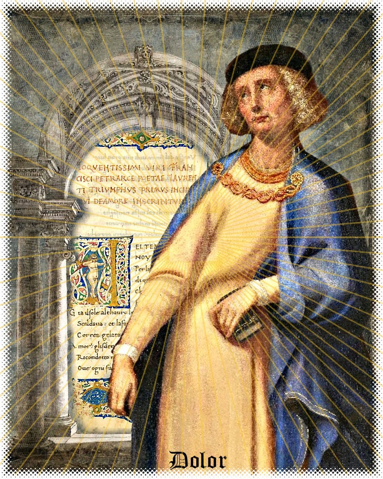 Thanks to Bev for a thoughtful challenge. My collage includes an image from Flickr Lost Gallery free to use. It is a painting of Saint Humbert of Savoy. The script was Googled and the background and arch are from Itkupilli. Dolor is a Latin word for sorrow. Gridlines a Photoshop brush.